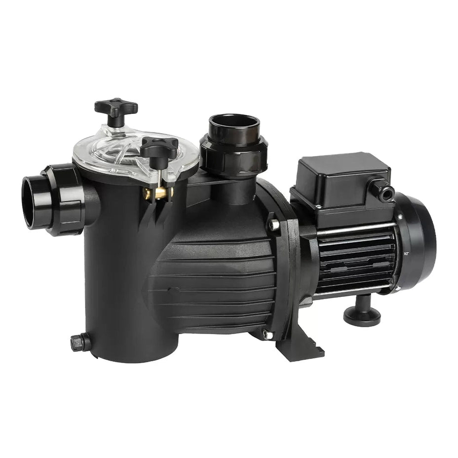 Bomba centrífuga autocebante para recirculación y filtrado de piscinas. Cuerpo y tapa en polipropileno reforzado, impulsor Noryl, eje en acero inoxidable AISI 304. Motor con protección IP55.