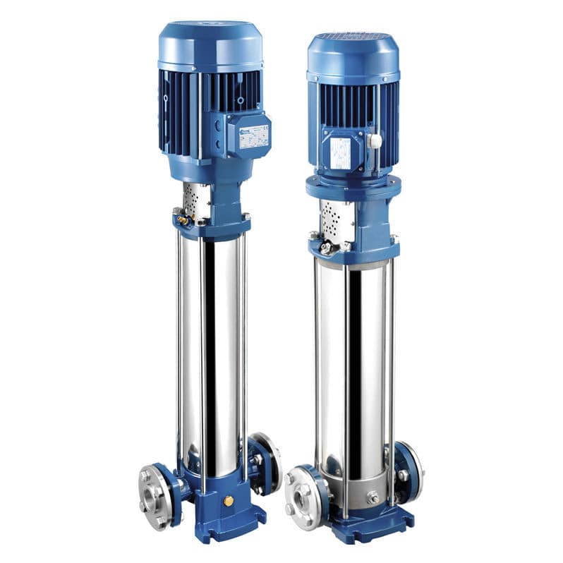 Bomba multietápica vertical ensamblada con junta de acople en acero inoxidable. Succión y descarga en línea. Ideal para presión constante y tanques elevados.